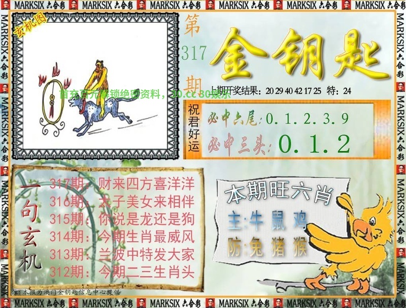 319期一字記曰:【奔】 为口奔驰,为势所逼,羽翼未丰也抢食。一分收获,十分努力,适者生存要积极。 玄机测字《注》 解:含桃庄主后园深:后园深解后肖狗鸡猴猪马羊。 综合取肖:狗鸡猴猪马羊 |
